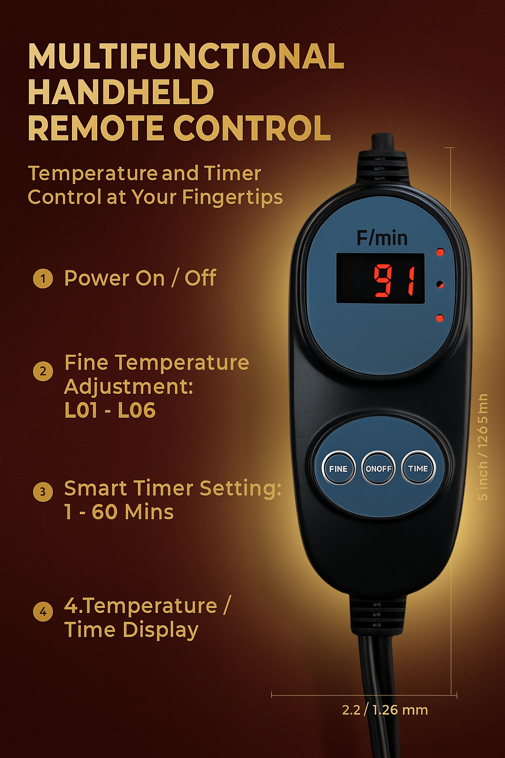 With a timer option from 5 to 60 minutes, you can easily schedule your session length, making it convenient and safe for regular use. -